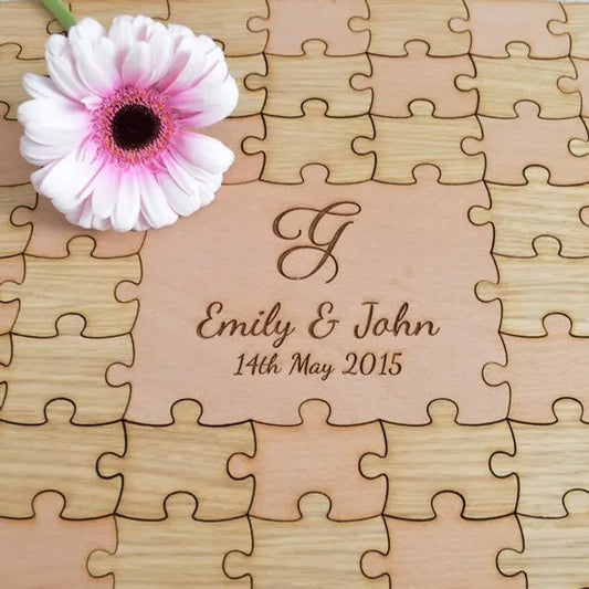 Personalised Wooden Wedding Jigsaw Puzzle Piece Guestbook