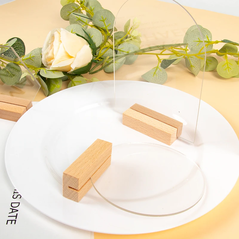 10pcs Acrylic Wedding Table Number Sign DIY Blank Clear Display Stand with Wooden Base Place Card for Wedding Party Table Decor