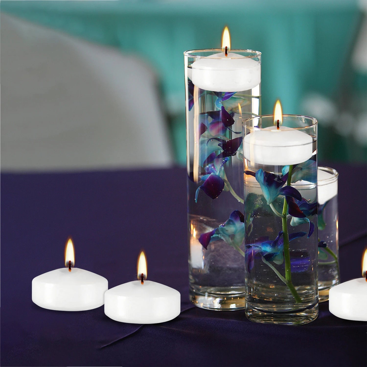 Put our white floating candles in vases filled with water, they will magically float, creating an enchanting visual appeal.无论您是 hosting an elegant dinner party, planning a romantic evening,还是只是想营造一个宁静的氛围,这些 candles都是您的理想选择。