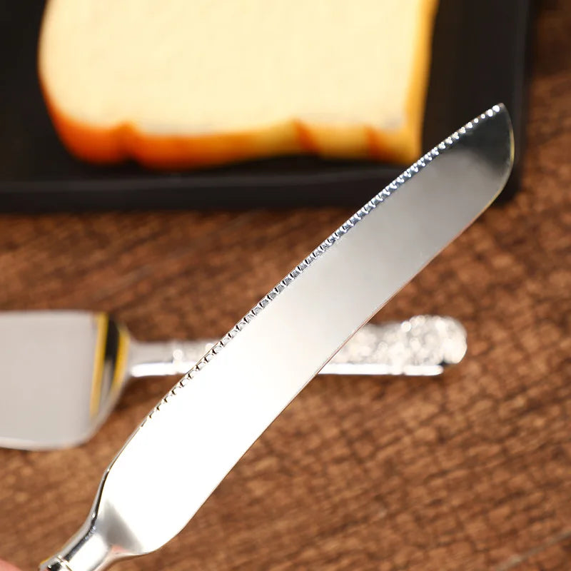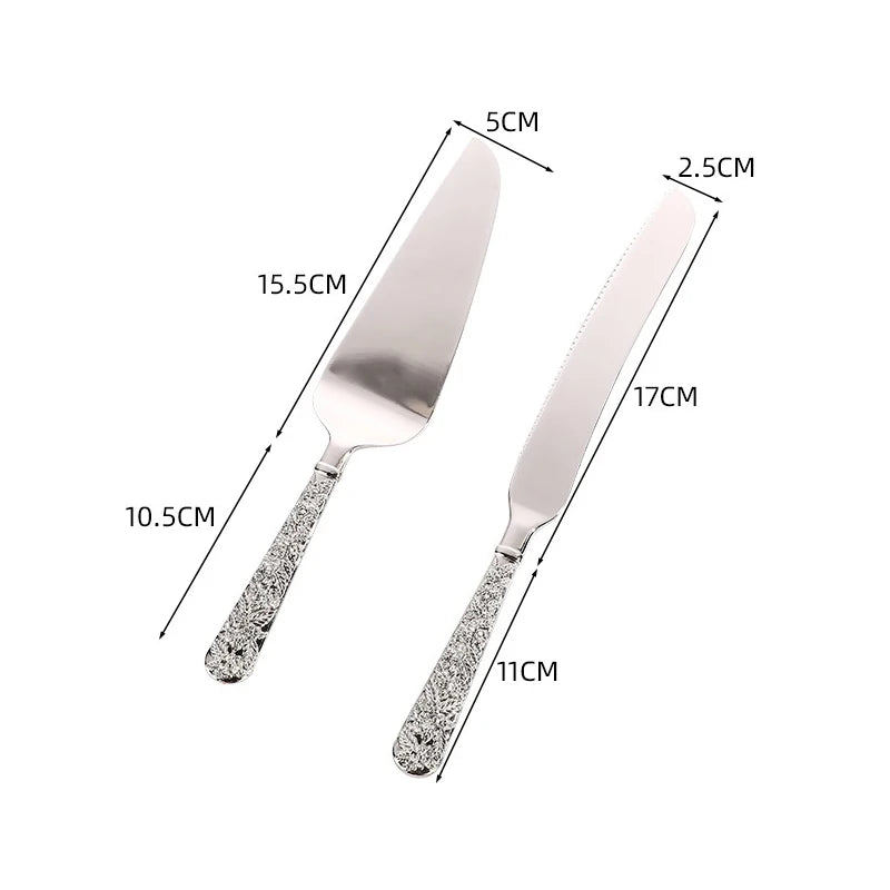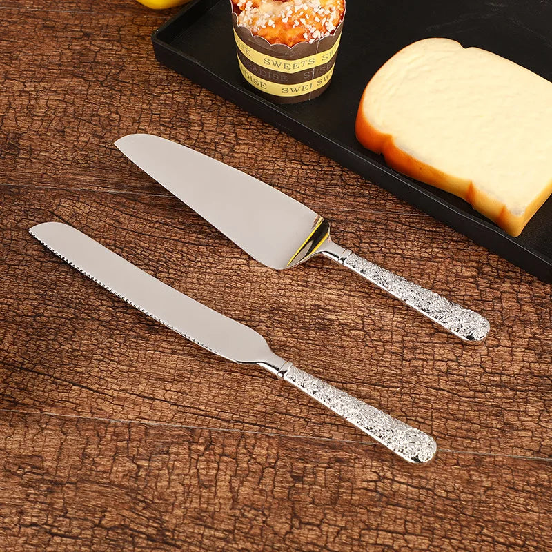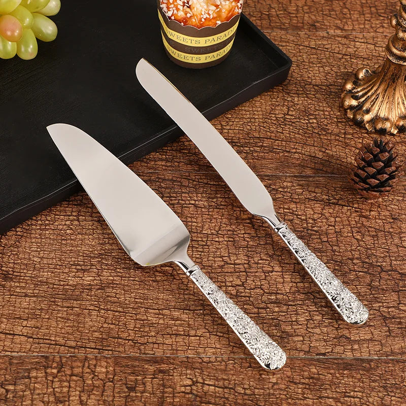 2pc Palace silver plated cake knife shovel suit wedding party decoration birthday cake shovel dinner knife baking pizza utensils