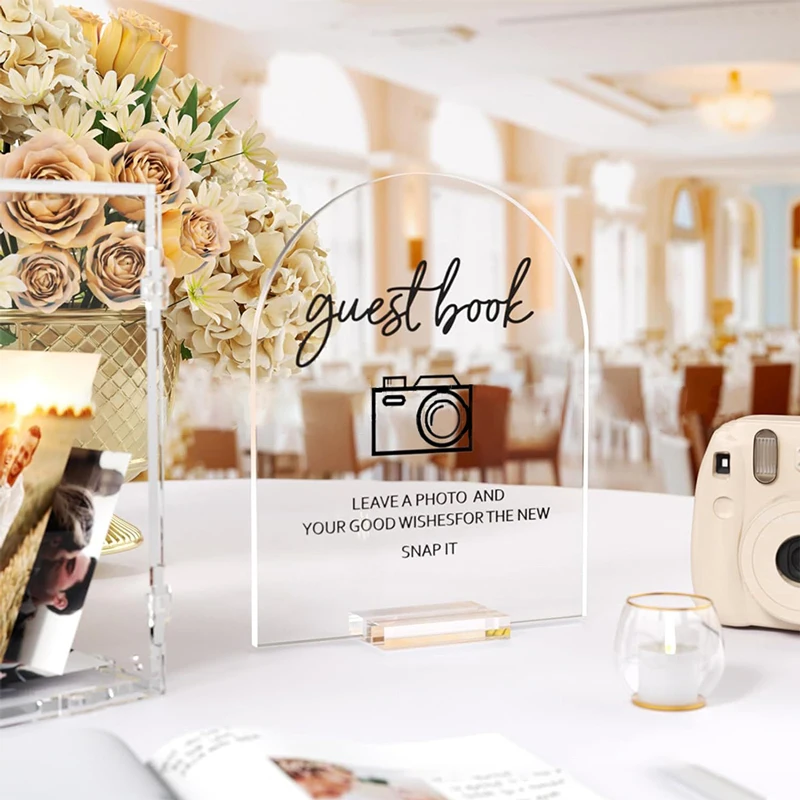 2Pcs Blank Acrylic Sign With Stand Arch Clear Table Sign Acrylic Sheet For Wedding Table Number Menu Sign Party Wedding Supplies