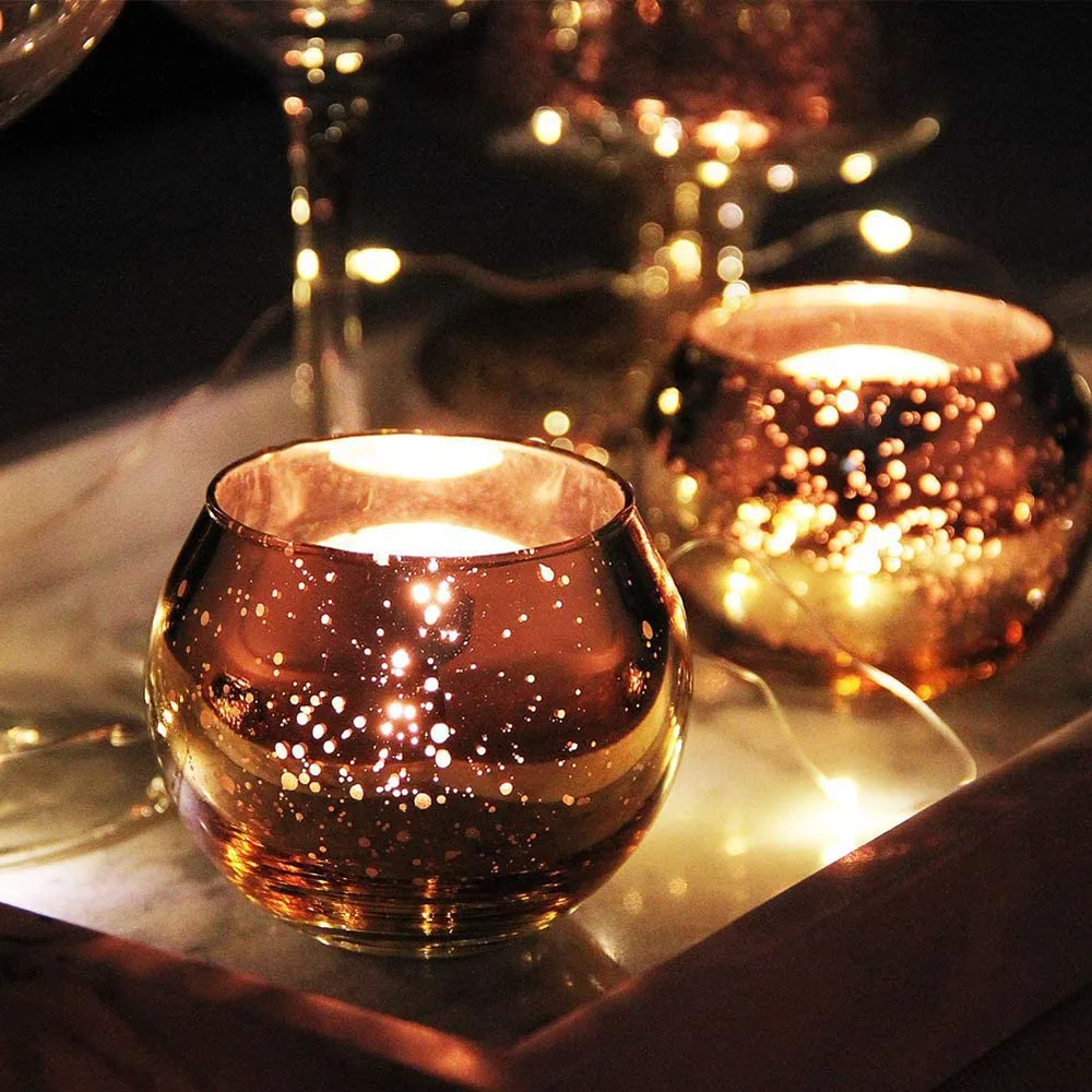6/12 Pcs Mercury Glass Candle Holders Votive Tealight Candlestick Wedding Centerpieces Parties Home Decoration Gift