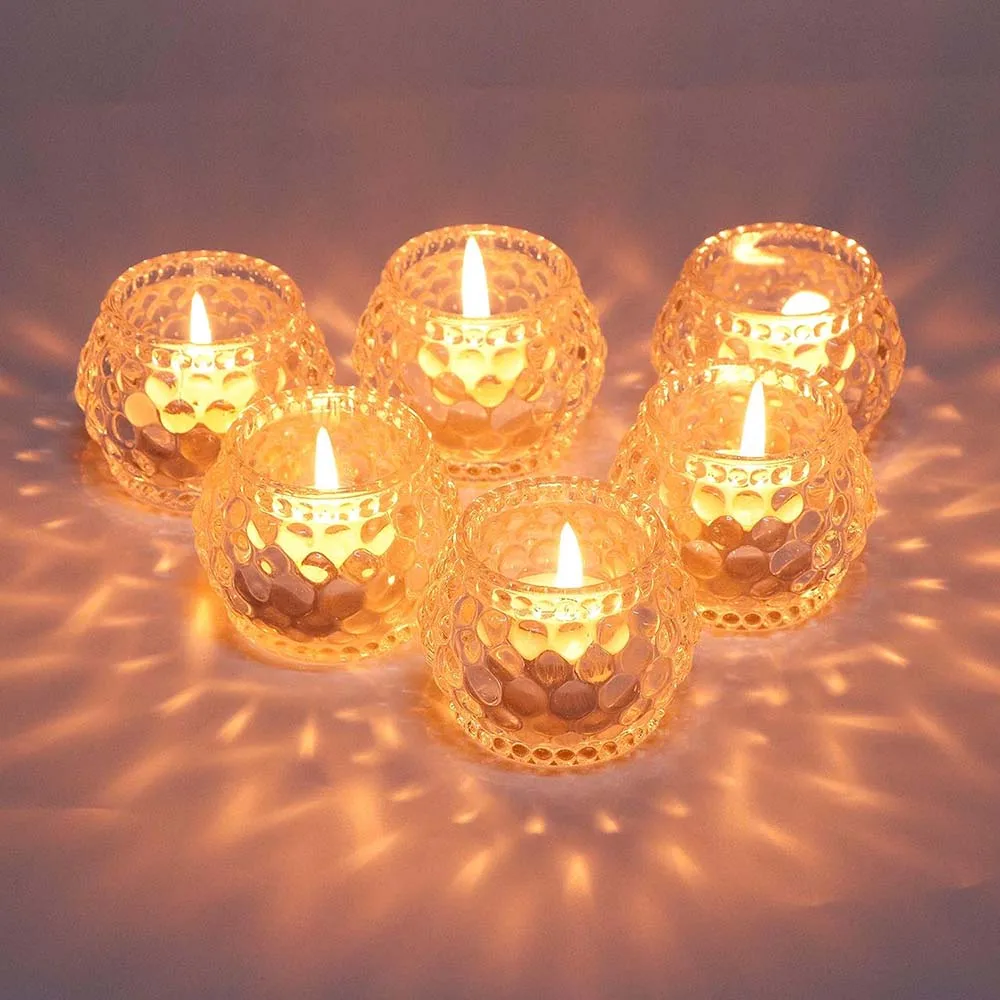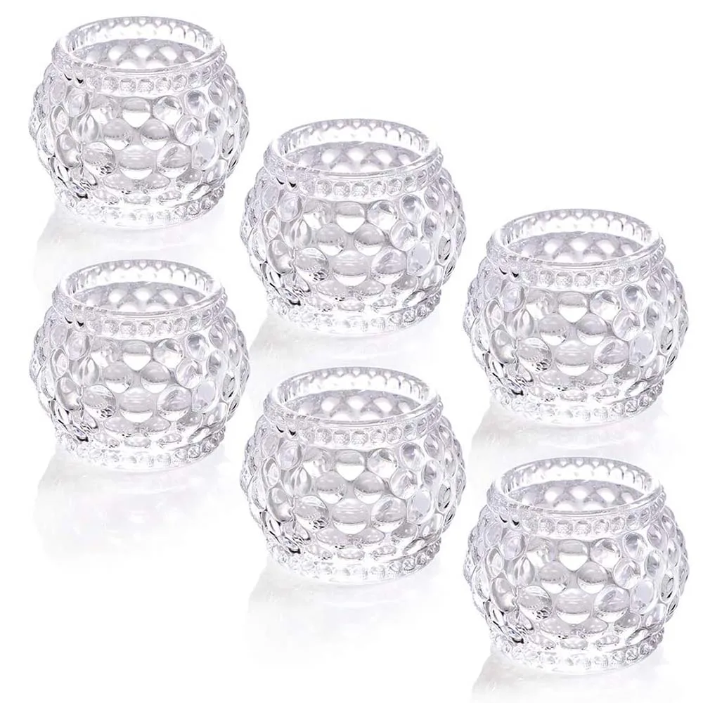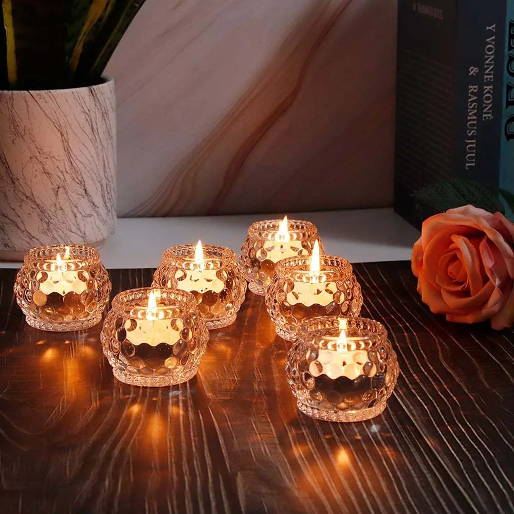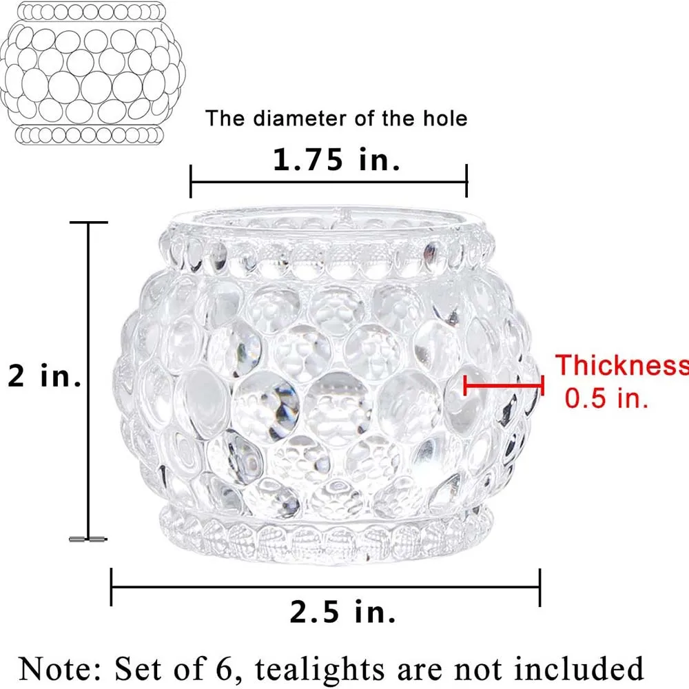 Glass Votive Tealight Candle Holders Set of 6, Round Clear Decorative Candle Holder for Table, Home Party Wedding Decor
