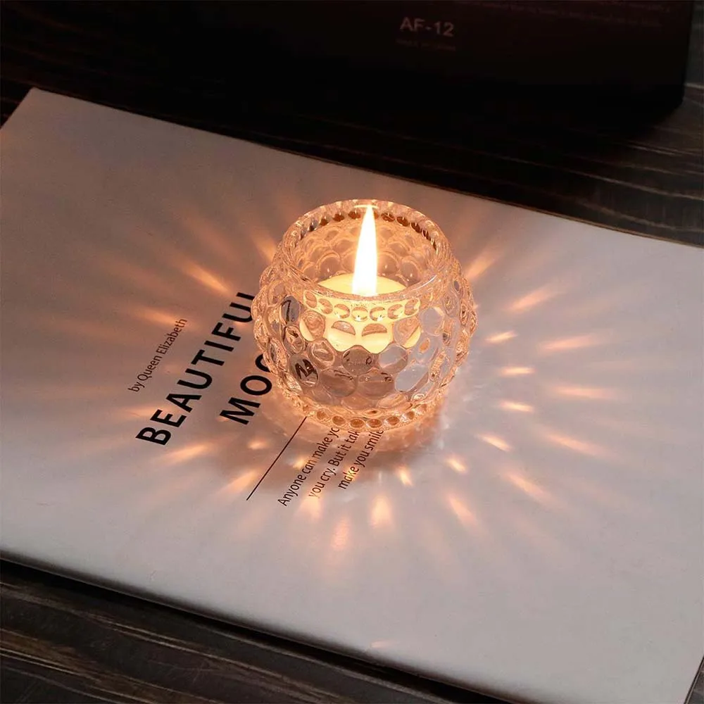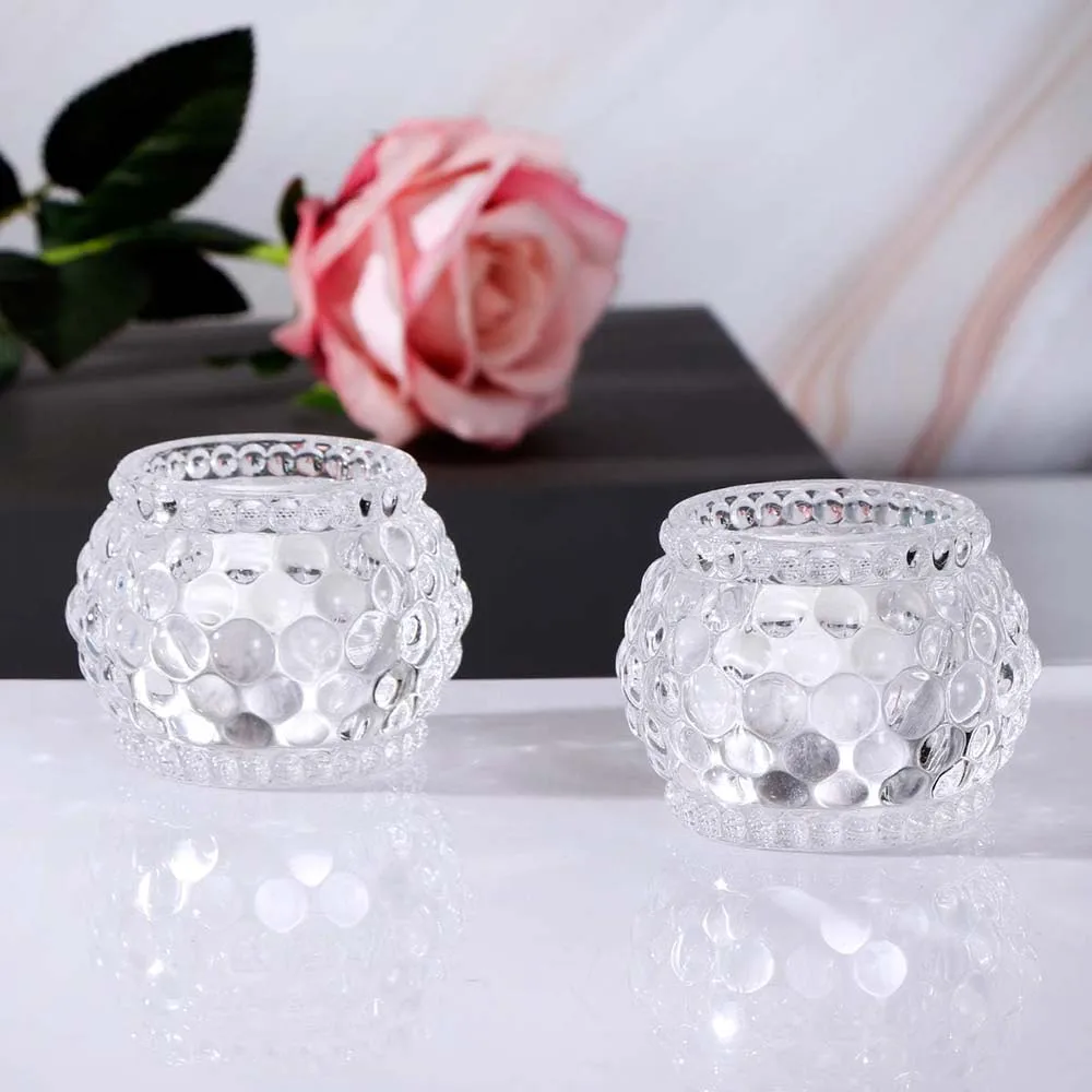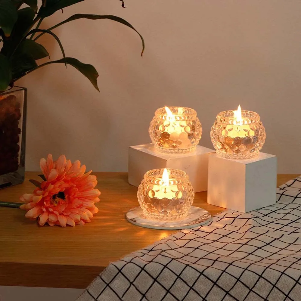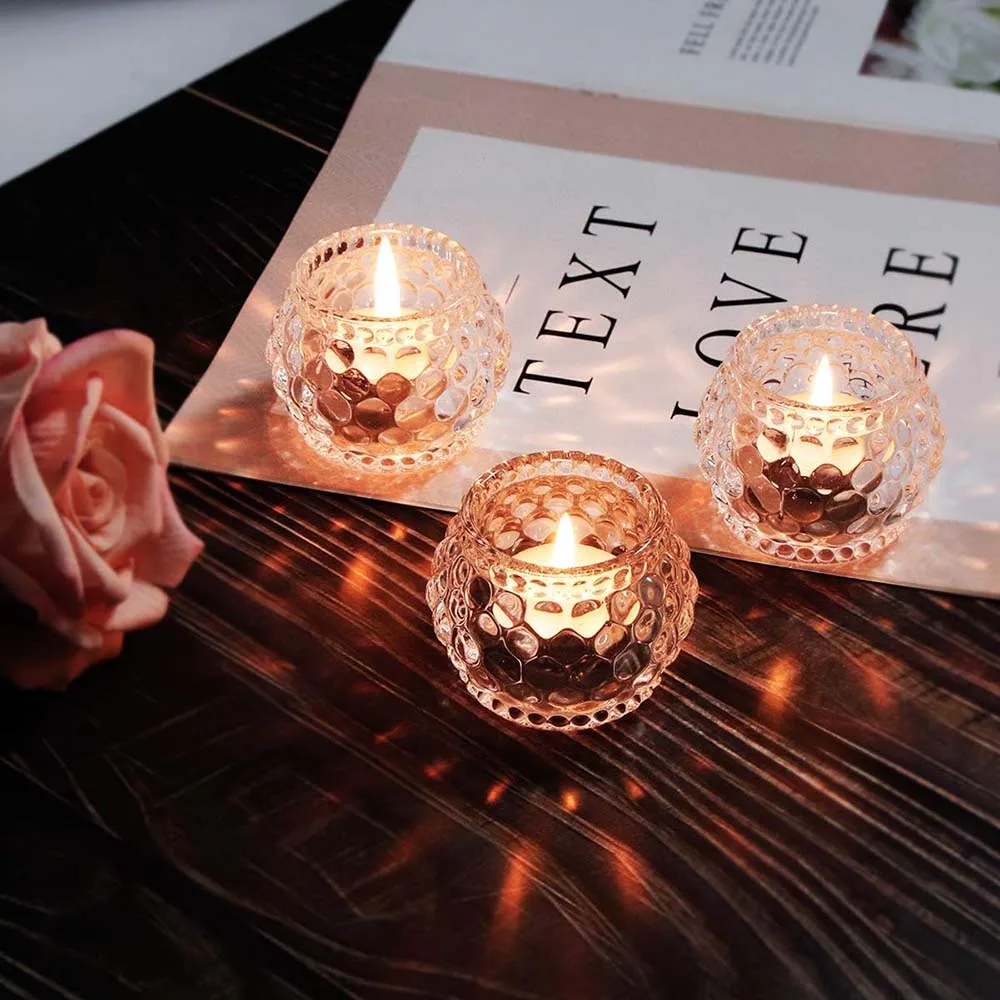 Glass Votive Tealight Candle Holders Set of 6, Round Clear Decorative Candle Holder for Table, Home Party Wedding Decor