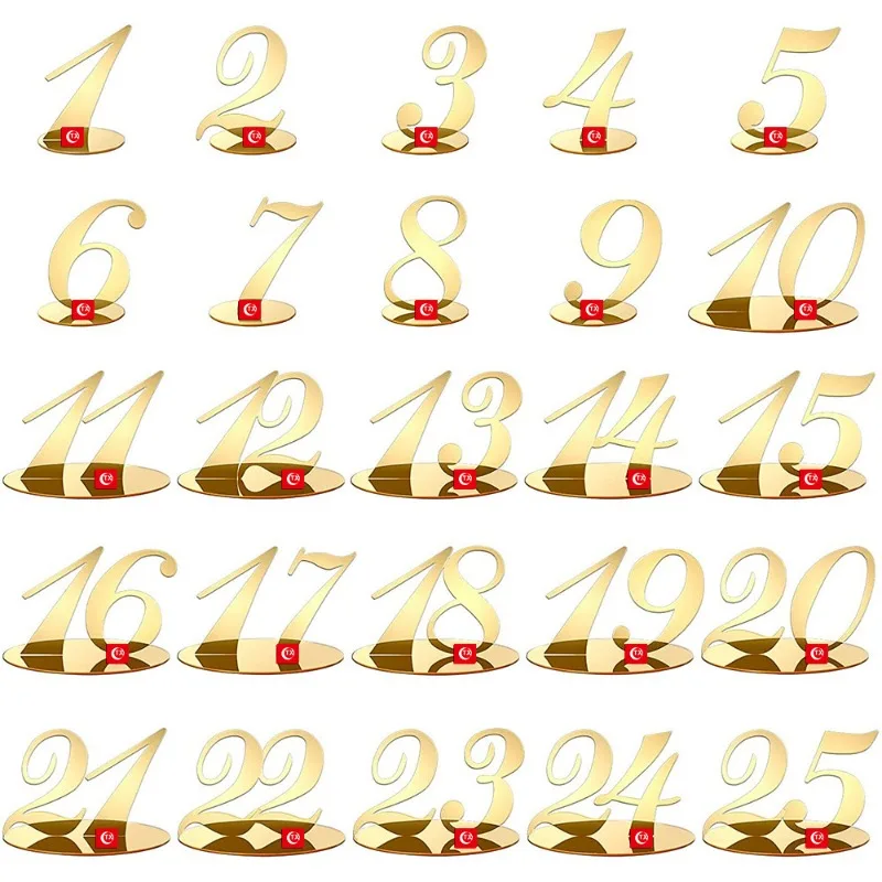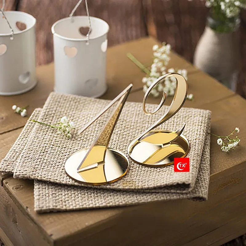 Gold Silver Table Number with Holder Elegant Mirror Table Number Sign Seat Card for Wedding Birthday Party Anniversary Event